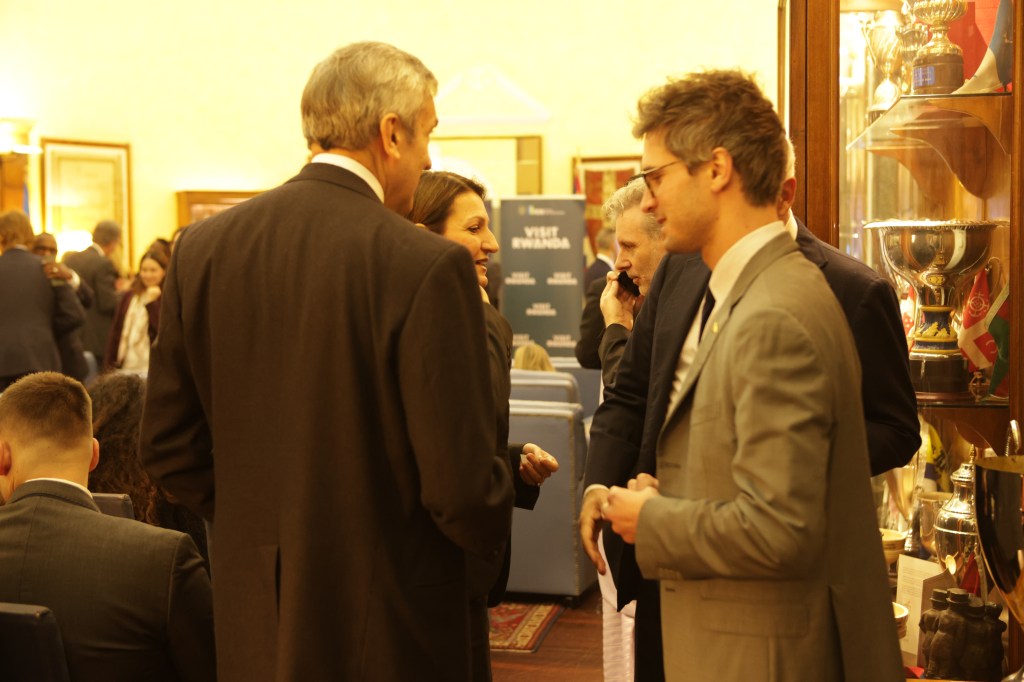 Fin dalle prime battute, il clima è apparso dinamico e orientato al dialogo. Ad aprire la serata è stato l’intervento dell’Ambasciatore del Rwanda in Italia S.E Nkulikiyimfura Francois, che ha accolto gli ospiti con parole di gratitudine e visione: ha espresso il suo sincero apprezzamento per la presenza dei partecipanti, sottolineando come la loro scelta di dedicare tempo, in un venerdì sera, ad approfondire le opportunità offerte dal Rwanda fosse un segnale concreto di interesse e fiducia. Nel suo discorso ha evidenziato la solidità della partnership economica tra Rwanda e Italia, rafforzata negli ultimi anni da accordi bilaterali in ambito di sviluppo sostenibile, cooperazione economica e cambiamento climatico.